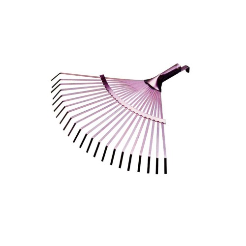 Equipada con púas metálicas flexibles que facilitan la recogida de hojas, hierbas y restos ligeros.