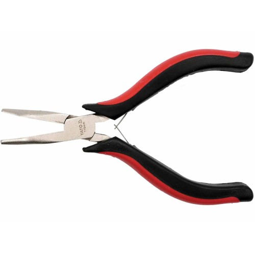 Alicate mini de boca semirredonda curva YATO de 115 mm, diseñado para trabajos de precisión en espacios reducidos y aplicaciones de electrónica, mecánica fina o montaje.