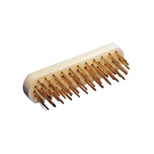 Cepillo de mano fabricado en acero latonado, diseñado para trabajos manuales de limpieza, desoxidado y preparación de superficies metálicas.