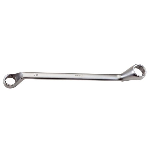 La llave estrella acodada TAKEN está fabricada en resistente acero Cromo Vanadio, lo que garantiza una alta durabilidad y resistencia al desgaste.