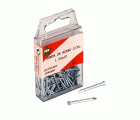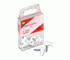 Estuche de grapas de plástico transparente especialmente diseñado para la fijación ordenada y discreta de cables de TV y señal.