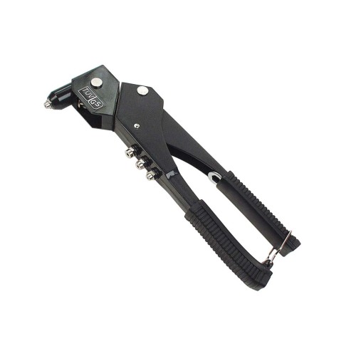 Está equipada con 4 cabezales intercambiables para adaptarse a diferentes diámetros de remaches: 2,4 mm, 3,2 mm, 4 mm y 4,8 mm.
