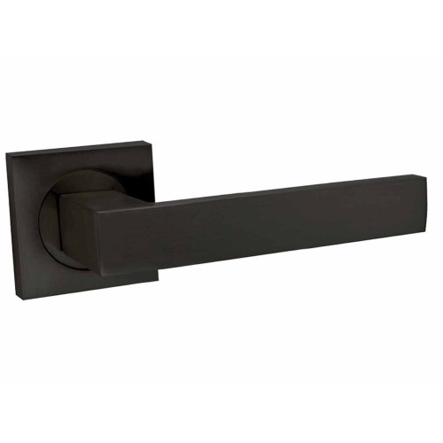 Este juego de manillas con roseta cuadrada en color negro es una opción moderna y elegante para puertas de interior.