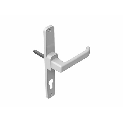 Color: Blanco Distancia bocallave (en mm): 85 Cuadradillo (en mm): 8 Ancho pletina (en mm): 34 Alto pletina (en mm): 256 Largo manilla (en mm): 141.3 Alto manilla (en mm): 58.5 Alto paso manilla (en mm): 38 Apertura mano: Derecha