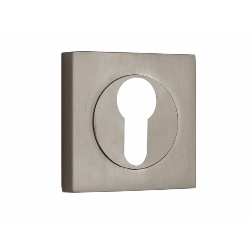 Roseta bocallave cuadrada fabricada en zamak con un elegante acabado en níquel satinado.