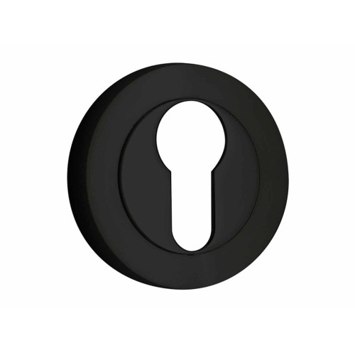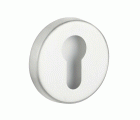 Roseta bocallave redonda fabricada en zamak de alta calidad, ideal para puertas interiores con cerraduras de llave estándar.