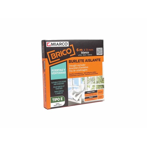 Color: Blanco Largo burlete (en m): 6 Ancho burlete (en mm): 9 Aplicaciones: Tiene un espesor de 4 mm y está diseñado para holguras pequeñas de entre 1 y 3 mm Aislamiento térmico: Impide pérdidas de calor (calefacción) y frío (A.A.) Aplicaciones: Aísla de ruidos Aplicaciones: Evita la entrada de agua y polvo