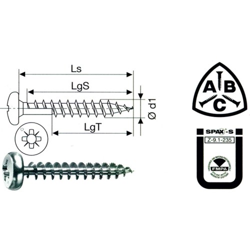 Ø Diámetro (en mm): 4 Largo (en mm): 50 Tipo cabeza: Redonda Forma de la rosca: Completa Longitud de rosca (en mm): 47 Huella: Pozidriv Tipo de punta: S Ø Diámetro cabeza (en mm): 8