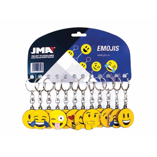 Cada llavero presenta una forma redonda con la cara de un emoji diferente, lleno de color y personalidad.