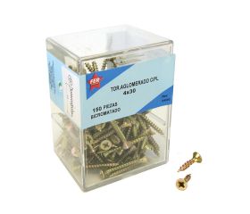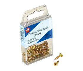 ESTUCHE TORNILLO AGLOMERADO CABEZA PLANA ACERO LATONADO POZIDRIV